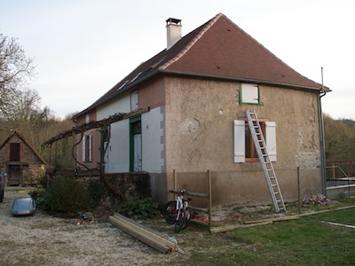 We used ‘Monocouche’ (manufactured by Saint-Astier) for the pointing. This is sold as a single coat render material but is ideal for pointing as well. The type we use is lime based so allows for some flexibility and ‘breathing’ as well as coming in a variety of colours.