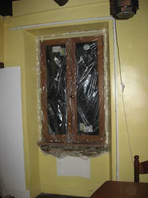 The electic wall heater had to be removed from below the window as the wall below the sill had to be rebuilt…..